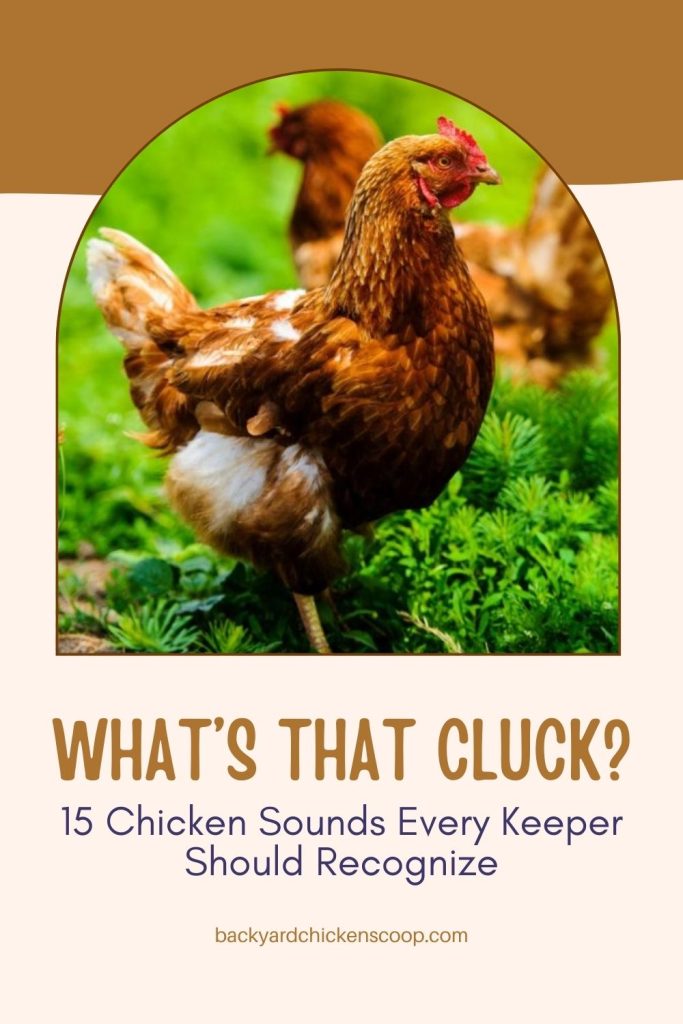 Ask any kindergartener what noise chickens make, and they’ll say “cluck cluck”! This is the contented sound that hens make as they go about their day, signaling that everything is calm and good in the world. You will hear this sound mostly when the hens are foraging or first thing in the morning when they gather outside for breakfast.