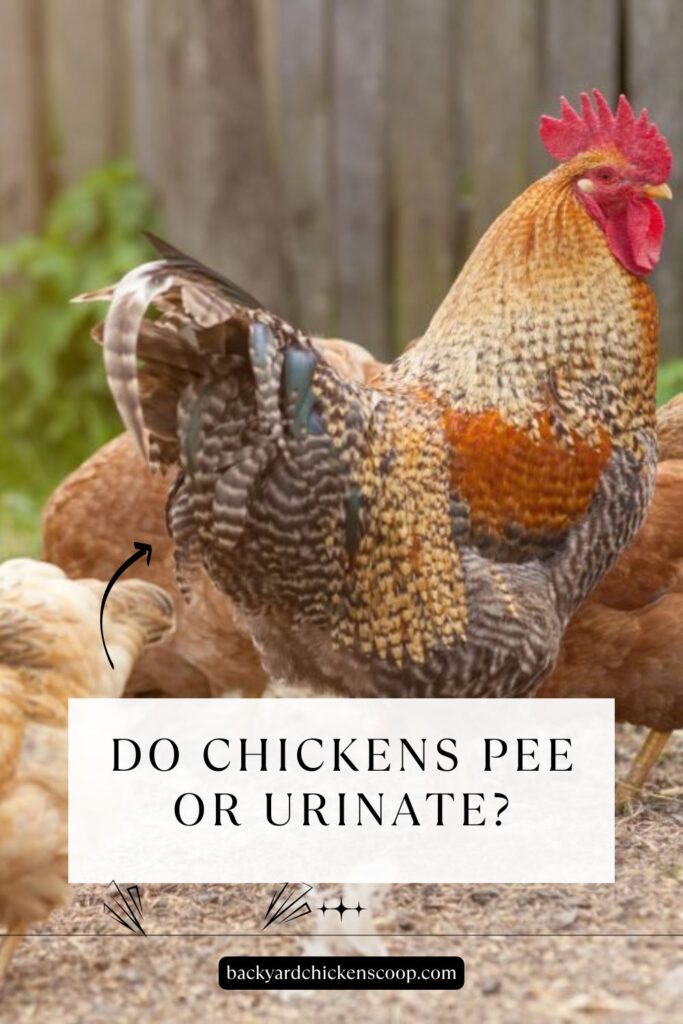 Since chickens are a member of the fowl species, they produce uric acid instead of producing liquid urine (pee) to dispose of waste. In other words, unlike mammals, chicken kidneys do not process and concentrate the urea into the urine; instead, they process it into a whitish solid. This is the reason why you never see chicken peeing.
